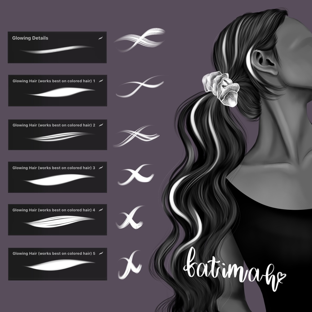 These kind of brushes works best on dark based hair color and if u use it as glowing u should choose a light color on the top of ur hair or fur drawing.